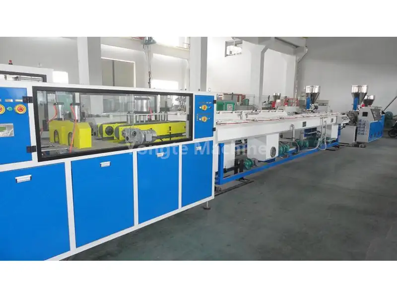 Yongte yüksək keyfiyyətli 16-50mm İkiqat Boşluqlu PVC Boru Hazırlama Maşını eyni vaxtda əla istehsal gücü olan iki PVC boru istehsal etmək üçün nəzərdə tutulmuş yüksək performanslı istehsal sistemidir. O, yüksək avtomatlaşdırma, yüksək səmərəlilik, üstün keyfiyyət, erqonomik mexaniki dizayn, enerjiyə qənaət və əməliyyat asanlığı kimi əsas üstünlüklərə malikdir.