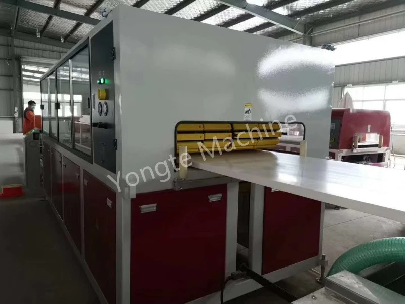 Avadanlıq Modeli və Konfiqurasiyası: The installed line adopts the SJSZ80/156 conical twin-screw extrusion system, equipped with automatic feeding, vacuum calibration, stable tration, precision cutting, edge trimming, and advanced control system. The line can make max. 900mm width PVC door panels with hollow sections by PVC resin and CaCo3 as filler.