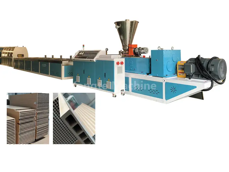 (1) Xüsusi dizayn edilmiş konusvari qoşa vintli ekstruder ağac unu və PVC qatran qarışıqlarını səmərəli şəkildə nəql edə, odun ununun karbonlaşmasının və ya PVC deqradasiyasının qarşısını almaq üçün materialları tez plastikləşdirə, istehsal səmərəliliyini artıra və enerji sərfiyyatını azalda bilər. (2) 15-20% enerji sərfiyyatını azaltmaq üçün servo motor, yüksək ötürmə səmərəliliyi və sabit işləyən, davamlı və enerjiyə qənaət edən avtomatik isitmə və temperatur nəzarət sistemi ilə birbaşa idarə olunan şaquli sürət qutusu ilə təchiz edilmişdir.