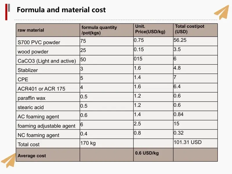 WPC qapı paneli və qapı çərçivəsinin istehsalı üçün xammala daxildir: PVC qatranı, ağac tozu, CaCo3 və Kimyəvi əlavələr, istehsalçı bazar məhsulunun tələblərinə uyğun olaraq formulasiyanı tənzimləyə bilər.