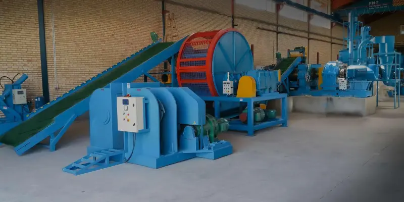 Təkər parçalayıcı maşın: rezin təkər parçasını rezin bloklara doğramaq üçün istifadə olunur.